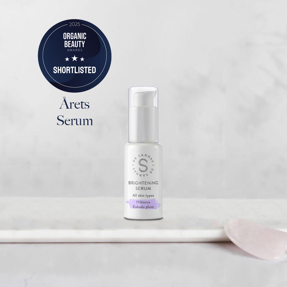 Ett ljuvligt serum som ger huden fin lyster genom att motverka uppkomsten av pigmenteringar med hjälp av aktiva ämnen som THBA (Tri Hydroxy Benzoic Acid) och C-vitamin. Dr Sannas Brightening Serum innehåller även två olika molekylstorlekar av hyaluronsyra som maximerar hudens fuktbarriär samt extrakt från hibiskus som skyddar huden mot oxidativ stress & lugnar/dämpar rodnad hud. Resultatet blir en klarare hud som byggs upp underifrån. 100 % naturligt, ekologiskt och veganskt.